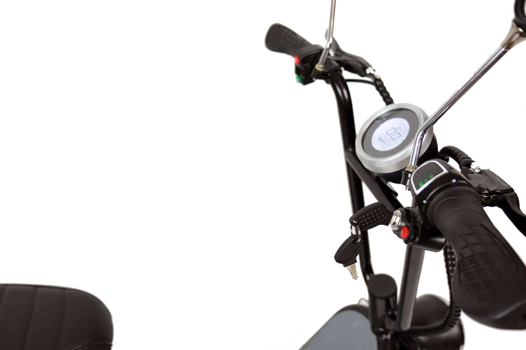 Во время езды важно знать текущую скорость, оставшийся заряд аккумулятора, режим езды. Именно эти необходимые параметры и отображает расположенный на руле дисплей.